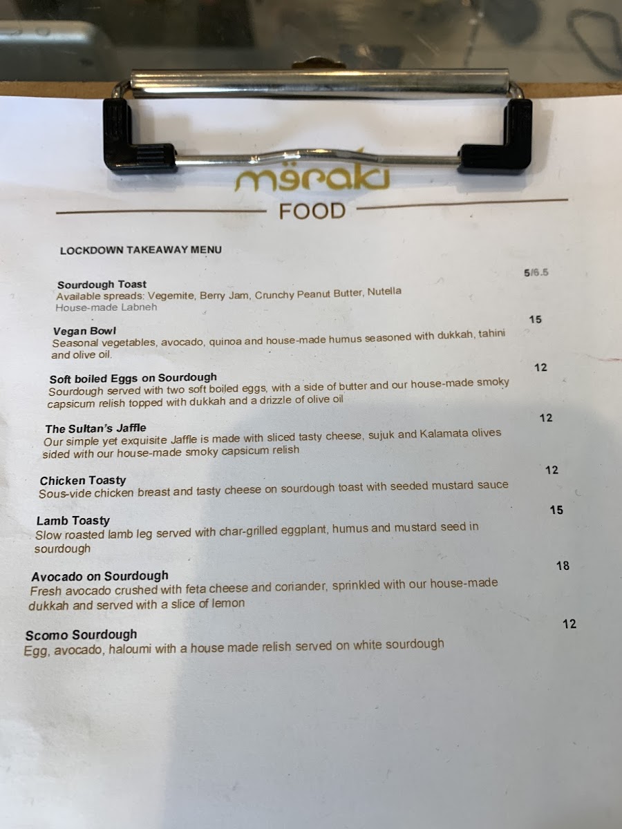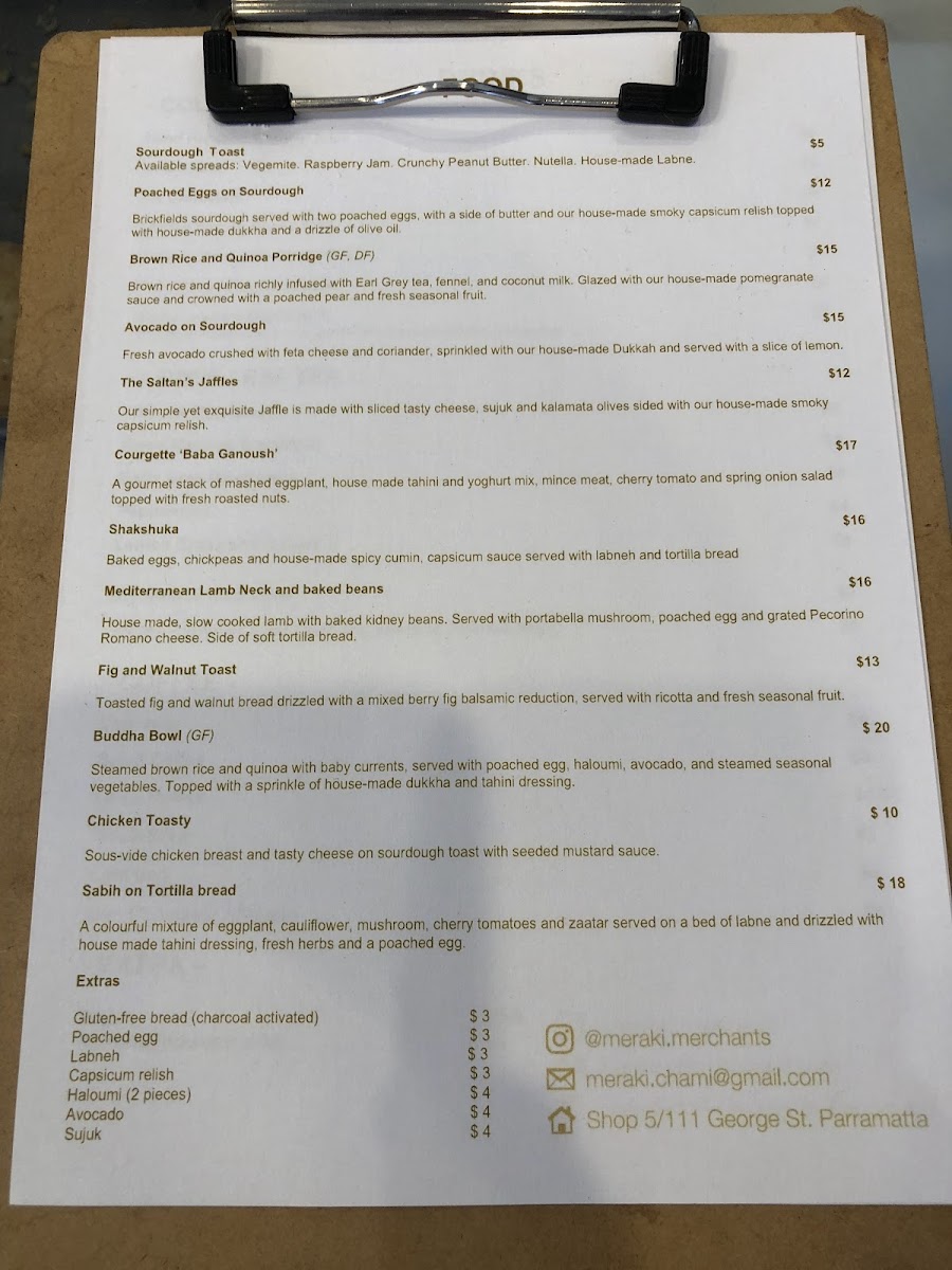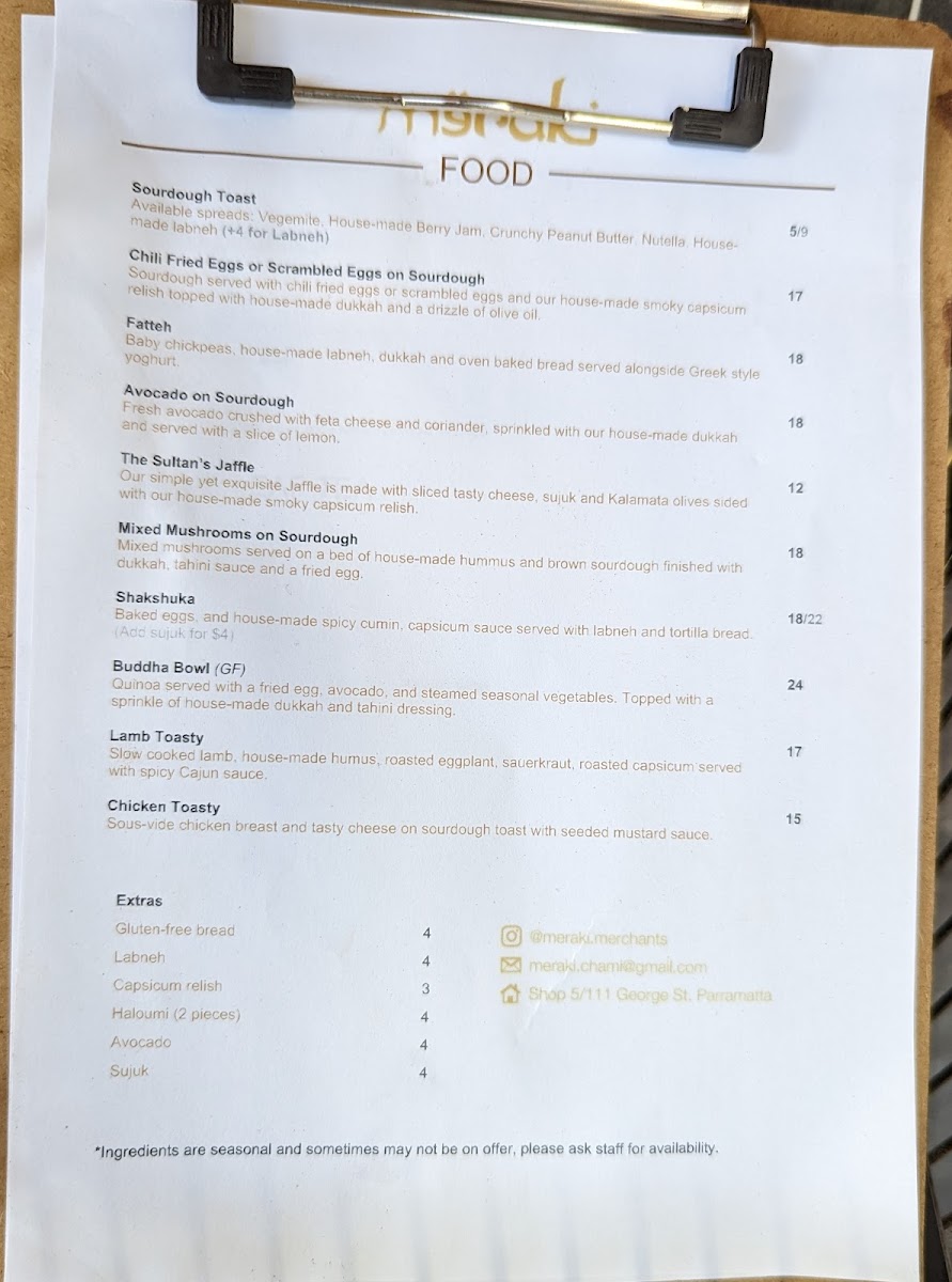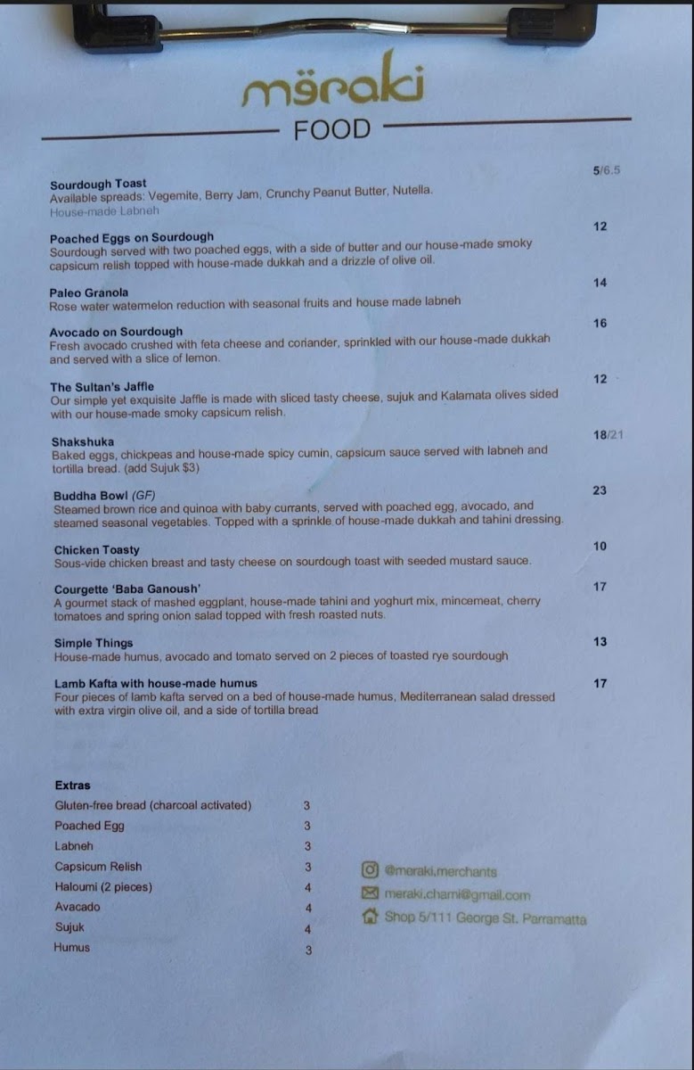 Meraki Coffee Parramatta Menu